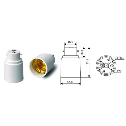 Descrizione Adattatore B22 => E27 - Bianco