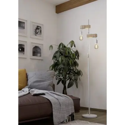 Eglo Lampada da terra Townshend Acciaio Bianca Legna | IP20 - Adatto per 2x E27