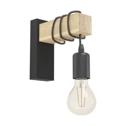 Eglo Luce Da Parete Townshend Acciaio Legna Nero Marrone | IP20 - Adatto per 1x E27