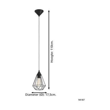 Eglo Luce Pendente Tarbes Nero | IP20 - Adatto per 1x E27