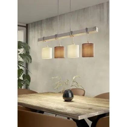 Eglo Luce Pendente Townshend 2 Acciaio Legna Bianca Marrone | IP20 - Adatto per 4x E27