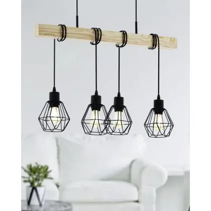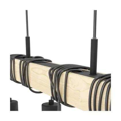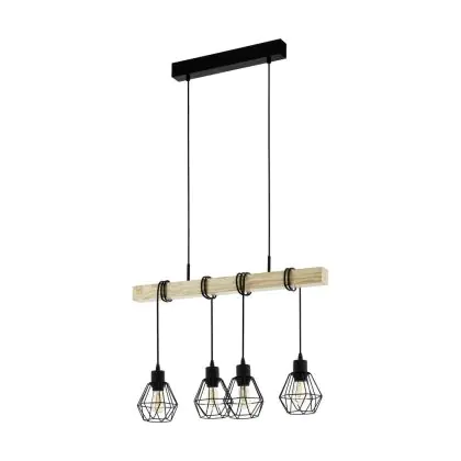 Eglo Luce Pendente Townshend 5 Acciaio Legna Nero | IP20 - Adatto per 4x E27