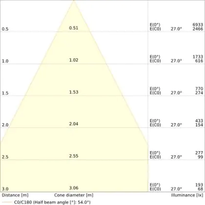 L'apertura del fascio luminoso indica l'angolo del fascio di luce proveniente da una lampada o lampadina. Si misura in gradi (D) e più piccolo è l'angolo, più piccola è l'apertura del fascio di luce.