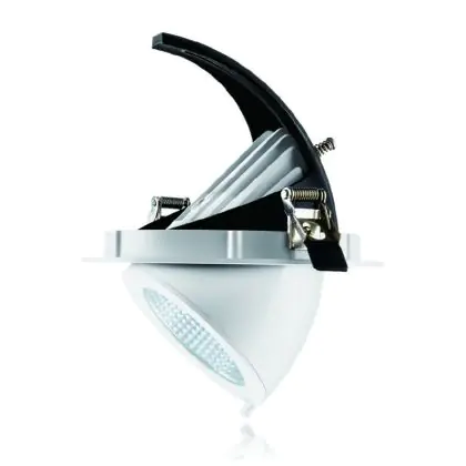 Un apparecchio con design inclinabile consente di dirigere l'illuminazione in modo specifico su un oggetto o una superficie. Ciò può rivestire un ruolo particolarmente importante nei negozi (mettendo in risalto una nuova collezione) o nelle gallerie (accentuando le opere d'arte). Può anche influenzare il comportamento di acquisto o l'interpretazione dei visitatori.