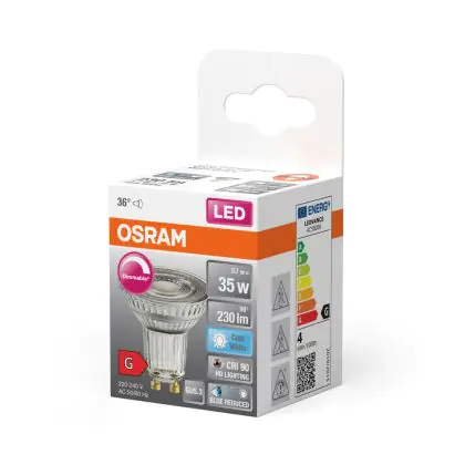 Descrizione Osram LED Superstar Riflettore Spot GU10 PAR16 3.7W 230lm 36D - 940 Bianco Freddo | Miglior Resa Cromatica - Dimmerabile - Sostitutiva 35W